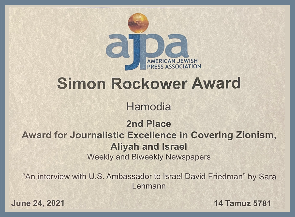 Second Place Hamodia Award